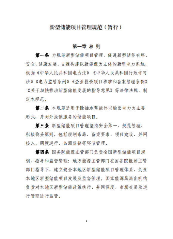 第一條 為規(guī)范新型儲能項目管理,促進新型儲能有序、安全、健康發(fā)展,支撐構(gòu)建以新能源為主體的新型電力系統(tǒng),根據(jù)《中華人民共和國電力法》《中華人民共和國行政許可法》《電力監(jiān)管條例》《企業(yè)投資項目核準和備案管理條例》《關于加快推動新型儲能發(fā)展的指導意見》,制定本規(guī)范。