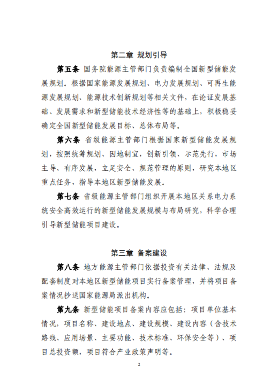 第五條 國務院能源主管部門負責編制全國新型儲能發(fā)展規(guī)劃。根據(jù)國家能源發(fā)展規(guī)劃、電力發(fā)展規(guī)劃、可再生能源發(fā)展規(guī)劃、能源技術創(chuàng)新規(guī)劃等相關文件,在論證發(fā)展基礎、發(fā)展需求和新型儲能技術經(jīng)濟性等的基礎上,積極穩(wěn)妥確定全國新型儲能發(fā)展目標、總體布局等。