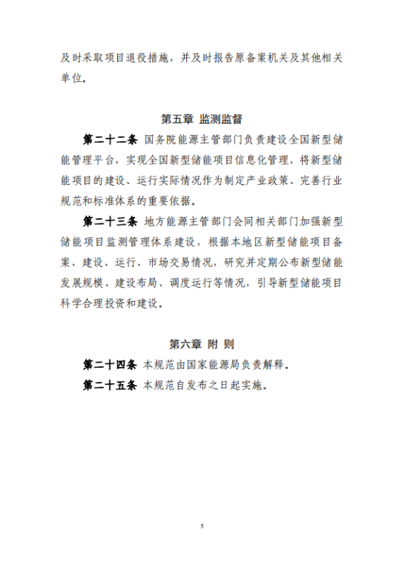 第二十二條 國務院能源主管部門負責建設全國新型儲能管理平臺,實現(xiàn)全國新型儲能項目信息化管理,將新型儲能項目的建設、運行實際情況作為制定產(chǎn)業(yè)政策、完善行業(yè)規(guī)范和標準體系的重要依據(jù)。