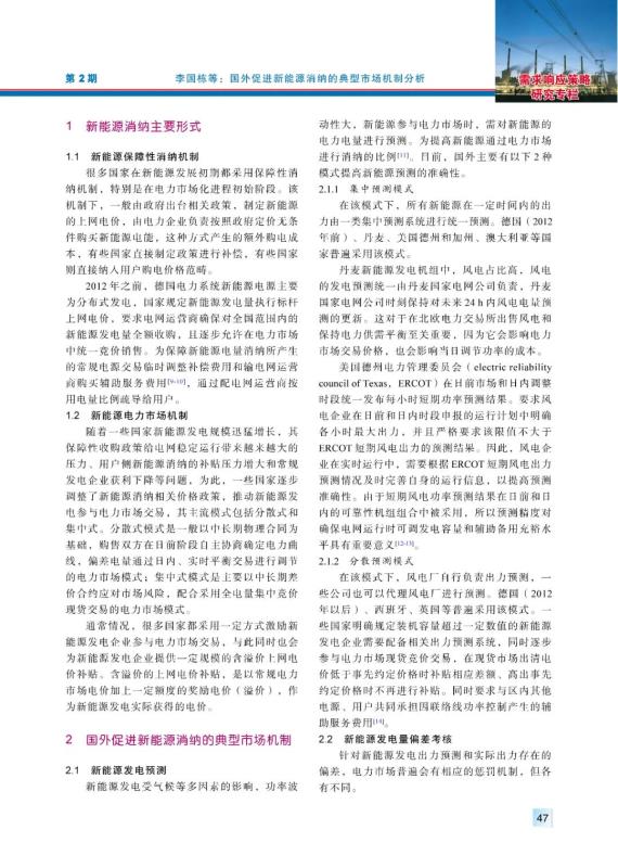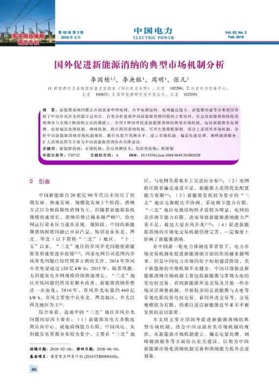 LI Guodong, LI Gengyin, ZHOU Ming, et al. Analysis on foreign typical market mechanisms for promoting new energy consumptive[J]. Electric Power, 2019, 52(2): 46-52, 60.