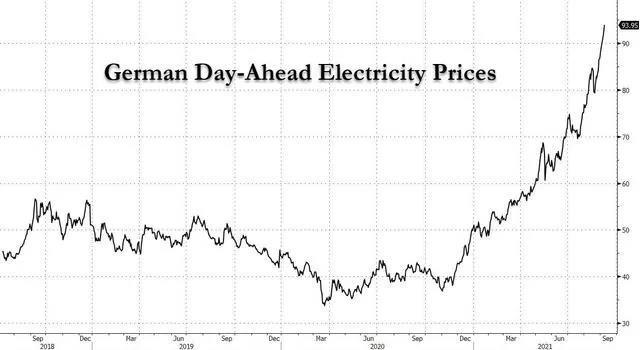 英國(guó)天然氣價(jià)格的暴漲無疑加劇了電價(jià)上漲的幅度和速度。與英國(guó)相比,德國(guó)電價(jià)也一直上漲。但明顯最近一個(gè)多月的時(shí)間里,英國(guó)的電價(jià)漲幅更高。