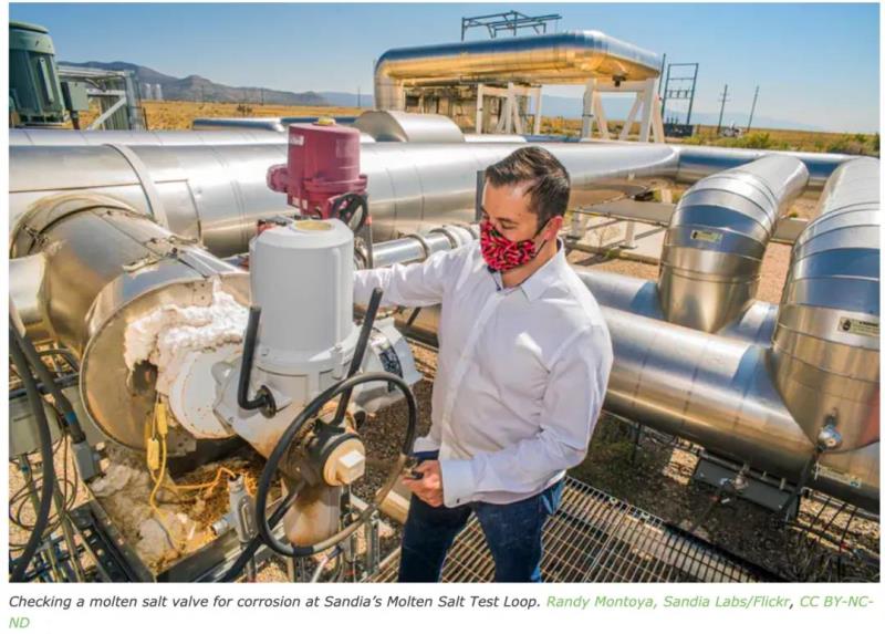 光熱太陽(yáng)能聚焦發(fā)電仍然相對(duì)昂貴,為了與其他形式的能源生產(chǎn)和儲(chǔ)存競(jìng)爭(zhēng),光熱發(fā)電需要提高效率。實(shí)現(xiàn)這一目標(biāo)的一種方法是提高鹽的加熱溫度,從而實(shí)現(xiàn)更高效的電力生產(chǎn)。不幸的是,目前使用的鹽在高溫下不穩(wěn)定。研究人員正在努力開發(fā)新的鹽或其他材料,可以承受高達(dá)705攝氏度的溫度。如何達(dá)到更高溫度的一個(gè)主要想法是加熱沙子而不是鹽,因?yàn)樯匙涌梢猿惺芨叩臏囟?。美?guó)能源部最近根據(jù)這一概念,為一個(gè)示范性光熱太陽(yáng)能發(fā)電廠提供資金。