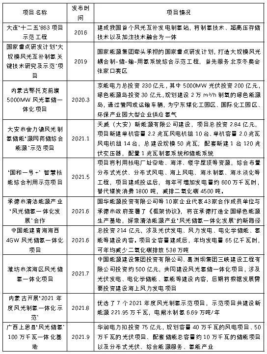 表1 近年我國風(fēng)光氫儲(chǔ)項(xiàng)目建設(shè)情況匯總