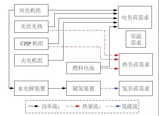 綜合能源系統(tǒng)是以電力系統(tǒng)為核心,打破電、氣、冷、熱等能源供應(yīng)系統(tǒng)單獨(dú)規(guī)劃運(yùn)行的模式,在規(guī)劃、設(shè)計(jì)、建設(shè)和運(yùn)行過程中,對(duì)各類能源分配、轉(zhuǎn)化、存儲(chǔ)、消費(fèi)等環(huán)節(jié)進(jìn)行有機(jī)協(xié)調(diào)與優(yōu)化,充分利用可再生能源的新型區(qū)域能源供應(yīng)系統(tǒng)。這其中,風(fēng)光氫儲(chǔ)系統(tǒng)被認(rèn)為是未來最為可行的新型能量儲(chǔ)存和轉(zhuǎn)化的方法之一。