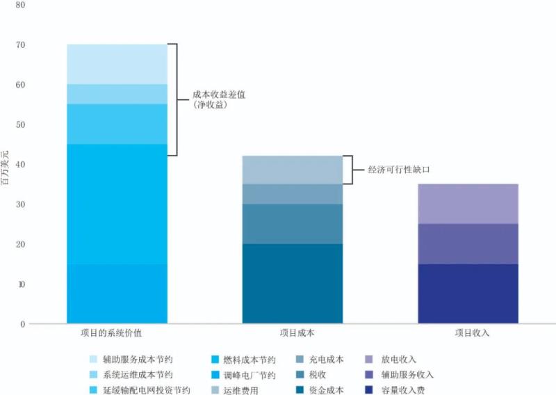 最后階段的結(jié)果是項(xiàng)目級(jí)成本和收益分析。成本是指建設(shè)和運(yùn)營(yíng)特定儲(chǔ)能項(xiàng)目的成本,收益是指系統(tǒng)級(jí)和項(xiàng)目級(jí)收益兩方面。