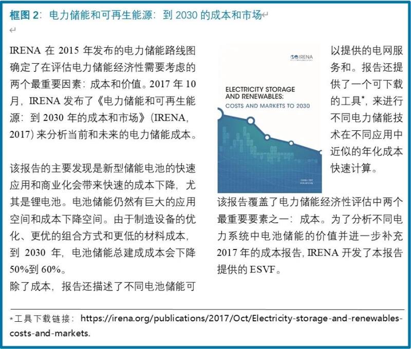 在促進(jìn)VRE并網(wǎng)方面,電力儲(chǔ)能有望扮演關(guān)鍵角色(IRENA,2018a,2019b)。高比例VRE并網(wǎng)的挑戰(zhàn)來(lái)自于其固有特性。更具體的說(shuō),太陽(yáng)能和風(fēng)能資源的波動(dòng)性和不確定性為實(shí)現(xiàn)供需平衡帶來(lái)了技術(shù)挑戰(zhàn),反過(guò)來(lái),又增加了系統(tǒng)靈活性的要求。不斷提高的靈活性系統(tǒng)要求需要很多措施,儲(chǔ)能是其中之一。其他措施還包括柔性發(fā)電、需求側(cè)管理、智能堅(jiān)強(qiáng)輸配電網(wǎng)以及部門耦合(比如,可再生能源制氫[6]和車輛到電網(wǎng)[V2G]靈活性)(IRENA,2018a,2019b)。如本報(bào)告其他部分詳細(xì)闡述的那樣,ESVF的目的是在考慮提供延伸服務(wù)和成本效益的前提下,將儲(chǔ)能和其他方案進(jìn)行對(duì)比。