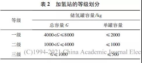 按照《加氫站技術(shù)規(guī)范》GB 50516—2010 規(guī)定,加氫站對(duì)站內(nèi)氫氣總?cè)萘亢蛦喂奕萘窟M(jìn)行了限定,參見表 2。目前加氫站大多為三級(jí)加氫站或二級(jí)加氫站,一級(jí)加氫站數(shù)量極少。由于氫氣壓力高,單罐容量少有大于 500 kg,均能滿足標(biāo)準(zhǔn)要求。