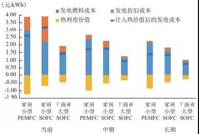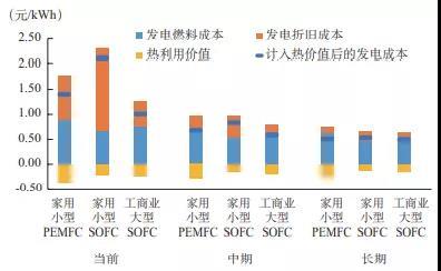 圖4中國近期、中期和長期分布式燃料電池系統(tǒng)經(jīng)濟(jì)性展望