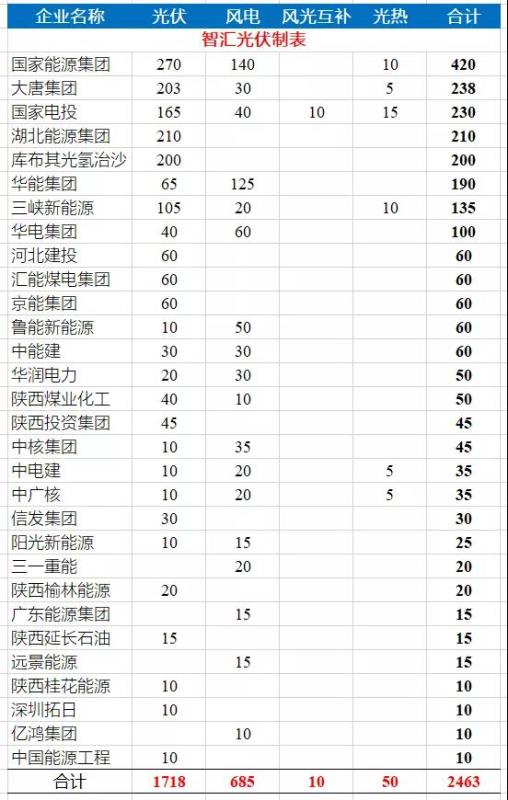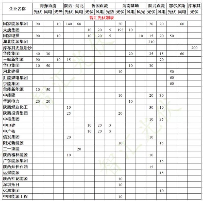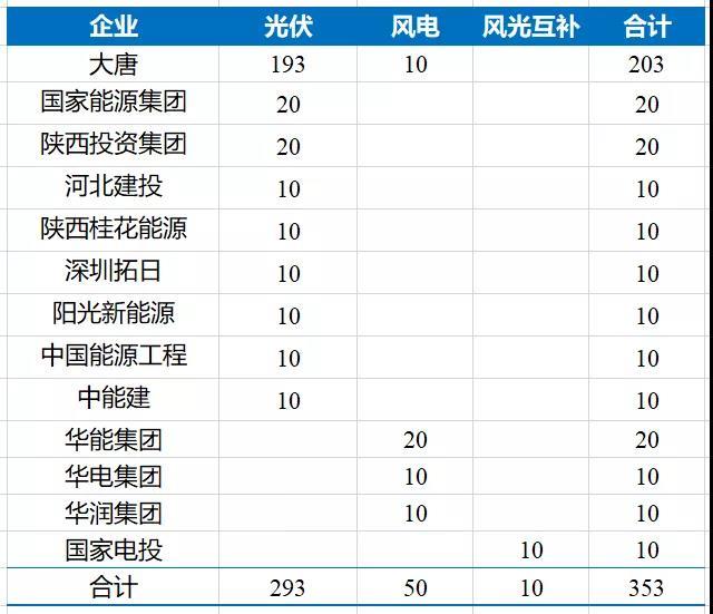 國(guó)家能源集團(tuán)、陜西投資集團(tuán)、華能集團(tuán):每家獲得20萬千瓦的規(guī)模;