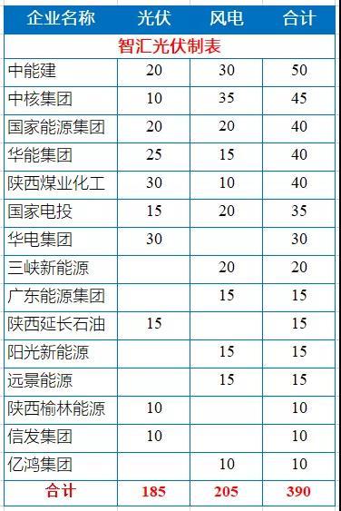 9月30日,陜西省發(fā)改委下發(fā)《關(guān)于陜武直流一期外送新能源項(xiàng)目?jī)?yōu)選結(jié)果的公示》,確定了32個(gè)項(xiàng)目共計(jì)390萬千瓦納入陜武直流一期外送新能源項(xiàng)目(其中風(fēng)電17個(gè)共205萬千瓦,光伏15個(gè)共185萬千瓦)。其中,中能建、中核集團(tuán)分別獲得50萬千瓦、45萬千瓦,國(guó)家能源集團(tuán)、華能集團(tuán)、陜西煤業(yè)化工獲得40萬千瓦。各企業(yè)獲得規(guī)模如下表所示。