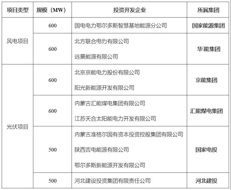 9月30日,準(zhǔn)格爾旗人民政府公示了項(xiàng)目的競(jìng)爭(zhēng)性配置結(jié)果。其中: