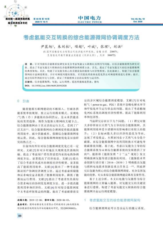 尹晨旭, 朱劉柱, 項超, 等. 考慮氫能交互轉換的綜合能源微網協(xié)調調度方法[J]. 中國電力, 2020, 53(10): 88-95, 148.