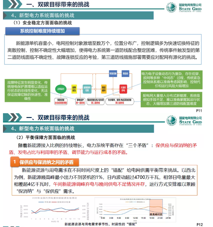 會(huì)上,國(guó)家電網(wǎng)有限公司西北分部調(diào)度控制中心主任馬曉偉做了題為“雙碳目標(biāo)下新型電力系統(tǒng)調(diào)度體系及實(shí)現(xiàn)路徑研究”的主旨報(bào)告,經(jīng)專(zhuān)家本人授權(quán),與大家分享。