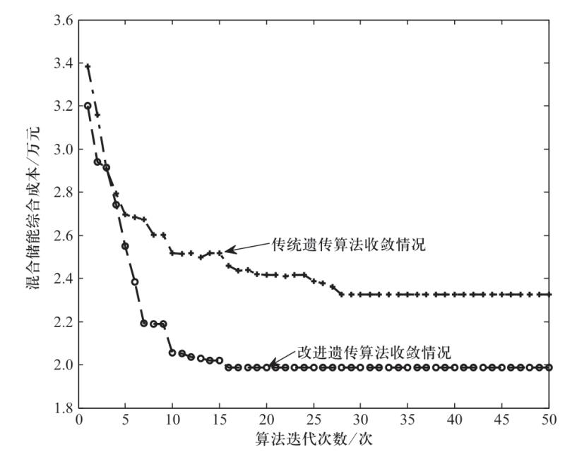 由圖9可知,與傳統(tǒng)的遺傳算法相比,利用入侵雜草算法改進(jìn)的遺傳算法求解出的成本較低,其中改進(jìn)遺傳算法到第16次迭代后收斂至19 872元,傳統(tǒng)遺傳算法到第28次迭代后收斂為23 241元。