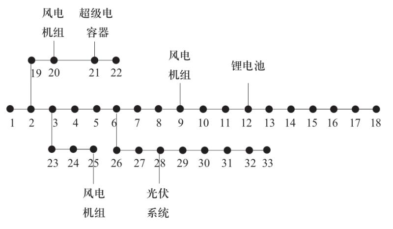 圖4 IEEE-33節(jié)點(diǎn)微電網(wǎng)算例