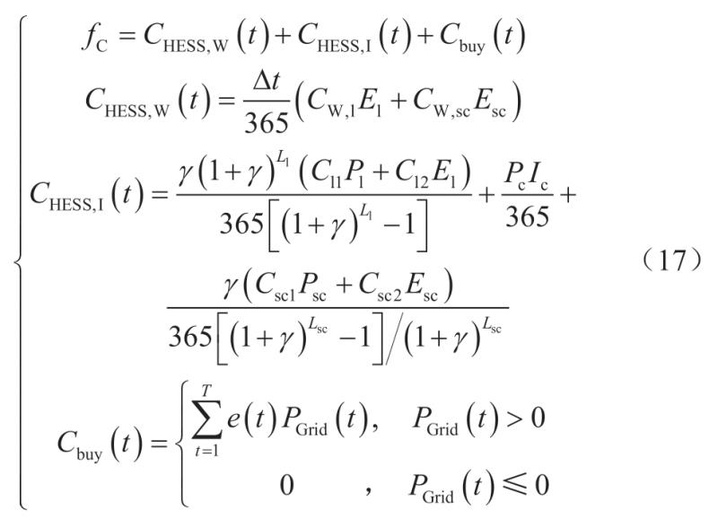 HESS日成本fC包括日運(yùn)維費(fèi)用CHESS,W(t)、日投資成本CHESS,I(t)、日購(gòu)電費(fèi)用Cbuy(t)。