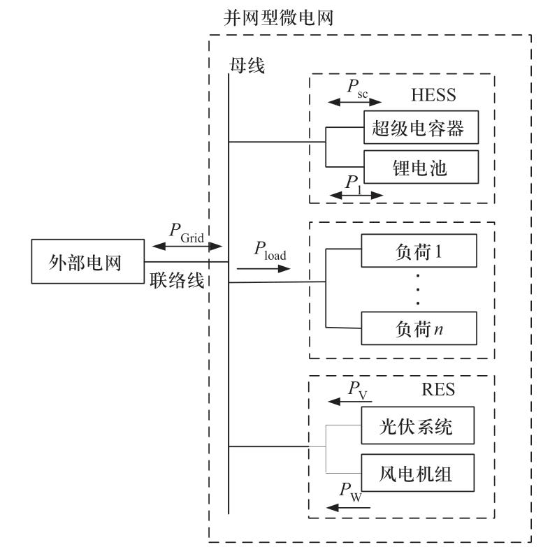 1 并網(wǎng)型微電網(wǎng)混合儲(chǔ)能系統(tǒng)