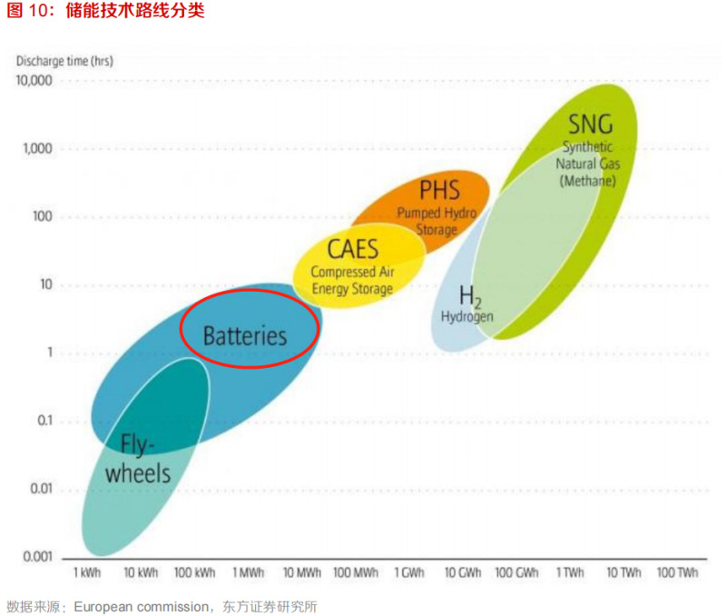 除技術(shù)成熟外,抽水蓄能還具有儲能時間長的優(yōu)勢。行業(yè)中往往將儲能時長超過4小時的儲能方式稱為長期儲能,類似的長期儲能還有壓縮空氣儲能、儲氫等,可以用來進(jìn)行電網(wǎng)調(diào)峰、備用容量。