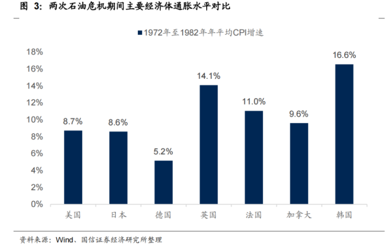 這兩次“能源危機(jī)”過后,全球陷入二戰(zhàn)后最嚴(yán)重的經(jīng)濟(jì)“大通脹”,當(dāng)時幾大經(jīng)濟(jì)強(qiáng)國十年間的CPI增速都在10%左右,韓國甚至一度出現(xiàn)復(fù)合年化率16.6%的“超級通脹”。70年代的“能源危機(jī)”也被經(jīng)濟(jì)學(xué)家稱為20世紀(jì)全球經(jīng)濟(jì)兩大黑暗時刻之一。