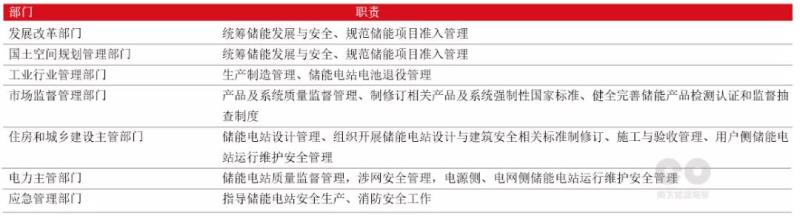 表1 《電化學(xué)儲(chǔ)能電站安全管理暫行辦法(征求意見(jiàn)稿)》中的部門職責(zé)