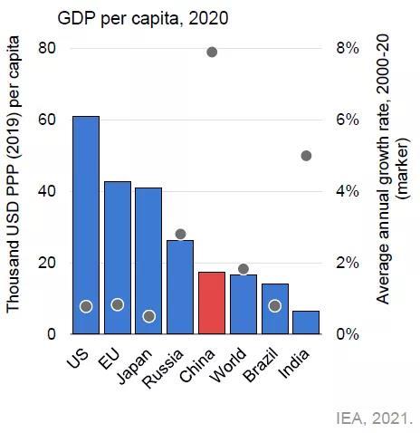 中國的能源體系體現(xiàn)了幾十年來在追求其他能源政策目標的同時,為使數(shù)億人脫貧所做的努力。自2005年以來,中國的能源消耗翻了一番,但同期國內(nèi)GDP能源強度大幅下降。燃煤發(fā)電約占中國發(fā)電總量的60%,且還在繼續(xù)建設新的燃煤電廠,但新增太陽能光伏發(fā)電裝機總量已超過世界上其他任何國家。中國是全球第二大石油消費國,但也擁有占全球70%的電動汽車電池產(chǎn)能,僅江蘇省一省的產(chǎn)能就占到全國的三分之一。中國對低碳技術的貢獻,尤其在太陽能光伏領域,主要由政府日益宏大的五年計劃推動。其所帶來的成本下降,改變了世界對清潔能源未來的看法。如果全世界要實現(xiàn)氣候目標,就需在清潔能源領域取得更大規(guī)模的進步,并涉及所有行業(yè)部門。例如,中國的鋼鐵和水泥產(chǎn)量超過世界的一半,僅河北省一省就占2020年全球鋼鐵產(chǎn)量的13%。中國的鋼鐵、水泥和化工行業(yè)的排放量比歐盟及英國的二氧化碳排放總量還要高。