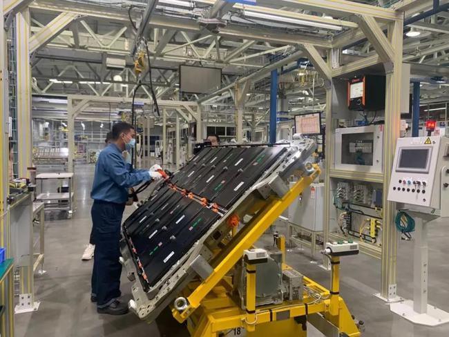 記者在現(xiàn)場(chǎng)看到,現(xiàn)場(chǎng)生產(chǎn)的動(dòng)力電池組產(chǎn)品,電池包之間沒有線束連接。