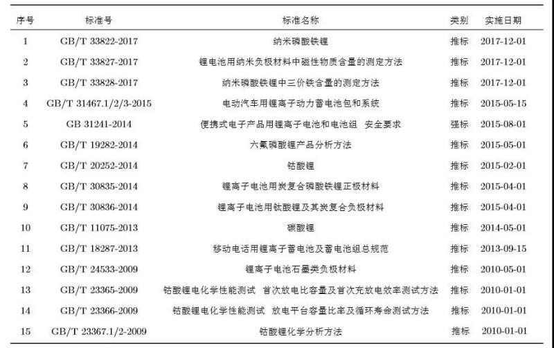 表1 國內(nèi)現(xiàn)行鋰電池相關(guān)標準