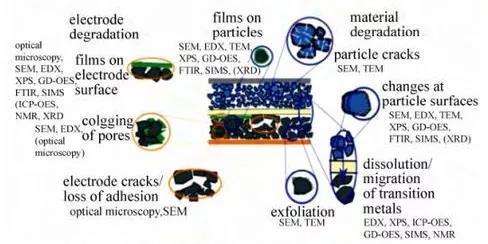 圖14 常見電池內(nèi)部失效點的表征分析技術(shù)