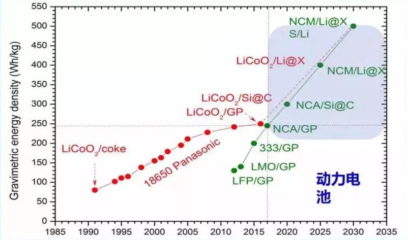 圖4 1990—2025年鋰離子電池能量密度發(fā)展路線