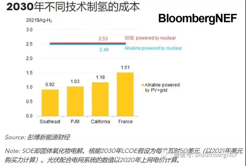 2030年加州光伏配合電網系統(tǒng)穩(wěn)定制氫的經濟性優(yōu)于核電所允許的最大電網儲能成本