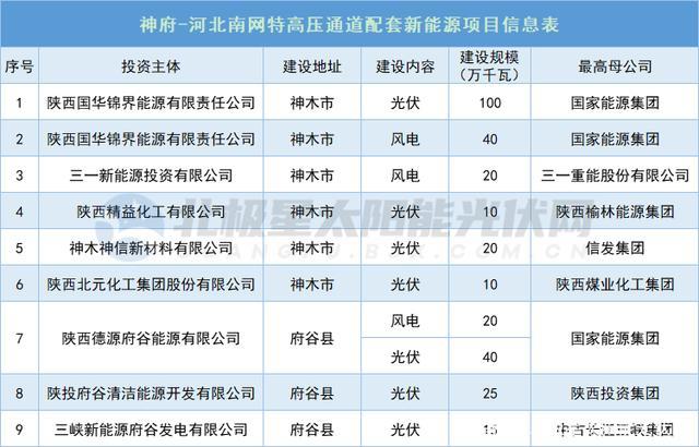 陜西能源局公示神府-河北南網(wǎng)特高壓通道配套新能源項(xiàng)目,其中風(fēng)電3個(gè)共80萬千瓦,光伏7個(gè)共220萬千瓦。