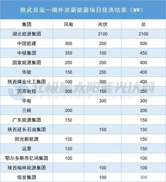 陜武直流一期外送新能源項(xiàng)目?jī)?yōu)選工作方案通知,其中210萬千瓦光伏發(fā)電項(xiàng)目由榆林市配置給湖北能源集團(tuán)開發(fā)建設(shè),390萬千瓦新能源項(xiàng)目由水規(guī)總院組織專家通過優(yōu)選確定開發(fā)業(yè)主。