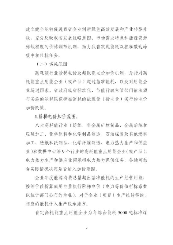 近期,浙江省發(fā)改委發(fā)布了《浙江省關(guān)于建立健全高耗能行業(yè)階梯電價和單位產(chǎn)品超能耗限額標(biāo)準(zhǔn)懲罰性電價的實施意見(征求意見稿)》。其中,明確了執(zhí)行加價的行業(yè)范圍。八大高耗能行業(yè)列入了階梯電價加價范圍。八大高耗能行業(yè)主要指:紡織、非金屬礦物制品業(yè)、金屬冶煉及壓延加工業(yè)、化學(xué)原料及化學(xué)制品制造業(yè)、石油煤炭及其他燃料加工、造紙和紙制品、化學(xué)纖維制造、電力熱力的生產(chǎn)和供應(yīng)業(yè)。同時,浙江本次將“數(shù)據(jù)中心”作為階梯電價加價范疇。
