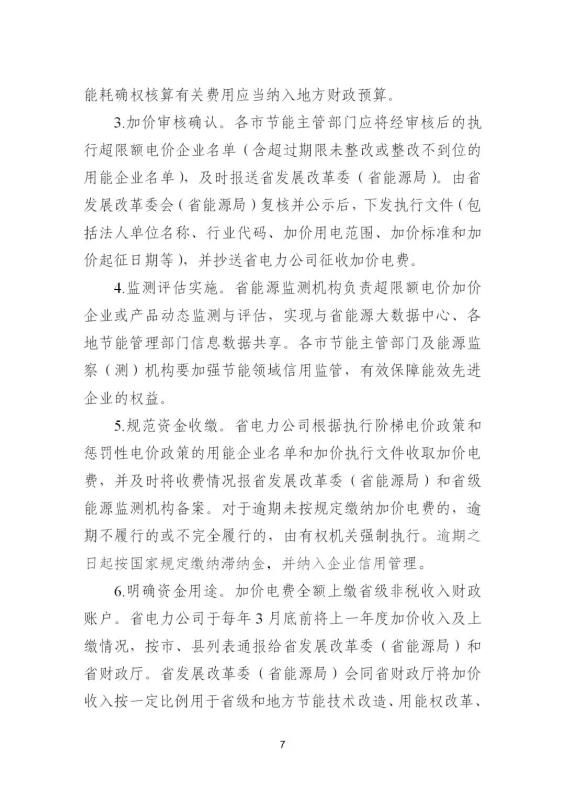 (二)懲罰性電價。對于單位產(chǎn)品用能量超過能耗限額標(biāo)準(zhǔn)的,企業(yè)綜合能耗按當(dāng)量值折算成用電量,按照超過限額能耗標(biāo)準(zhǔn)0~5%(含)、5%~10%(含)、10%以上三檔執(zhí)行懲罰性電價加價。懲罰性電價實行“超過限額標(biāo)準(zhǔn)全電量加價”制度。