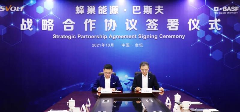 10月25日,蜂巢能源與巴斯夫(中國(guó))簽署戰(zhàn)略合作協(xié)議,宣布雙方將在正極材料、電池回收利用、上游資源等領(lǐng)域開(kāi)展全球范圍內(nèi)的戰(zhàn)略合作,旨在提升正極材料研發(fā)實(shí)力,開(kāi)發(fā)可持續(xù)發(fā)展的電池材料,鞏固雙方在全球市場(chǎng)的核心競(jìng)爭(zhēng)力。蜂巢能源董事長(zhǎng)兼CEO楊紅新、副總裁全素涵、黃征,巴斯夫杉杉電池材料有限公司CEO楊捷及管理團(tuán)隊(duì)等雙方領(lǐng)導(dǎo)出席了簽約儀式
