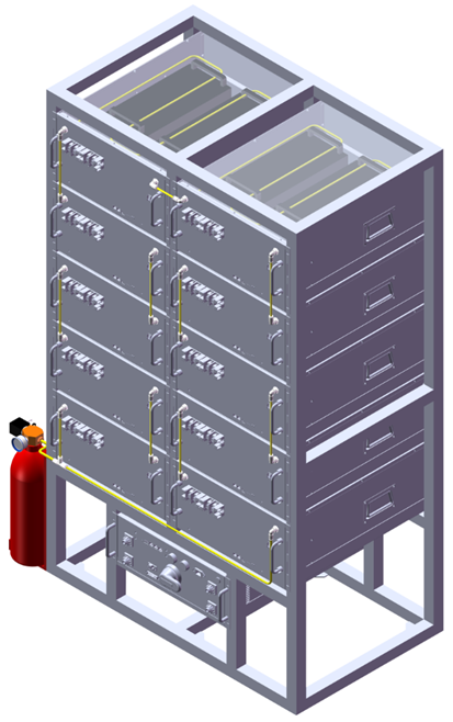 3、精準(zhǔn)防護(hù),嵌入式布置釋放管,實(shí)現(xiàn)模組/電芯級(jí)定位滅火,出現(xiàn)明火至撲滅≤2秒;