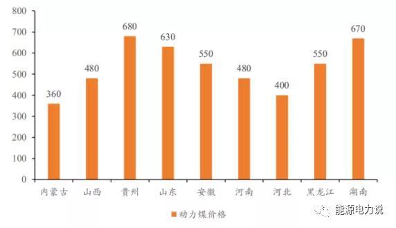 由于不同種類的煤價格有別,在這里我們主要考察各省份動力煤的價格,可以發(fā)現(xiàn)在煤炭儲量和產(chǎn)量較多的地區(qū)比如內(nèi)蒙古、山西等省份,相同種類煤炭的價格也相對其他省份較低。根據(jù)中國煤炭市場網(wǎng)發(fā)布的截至到 2019 年 1 月的數(shù)據(jù),全國部分省份動力煤價格如下,其中需要重點關(guān)注的是內(nèi)蒙古動力煤價格僅為 360 元/噸,而混煤的價格是 170 元/噸。