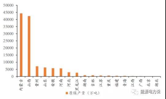 我國煤炭資源較為豐富且分布廣泛,全國 32 個省市(除上海外)都有煤炭資源,但是區(qū)域分布極不均衡,主要的格局是西多東少、北富南貧。其中山西、內(nèi)蒙古、陜西、新疆、貴州等五省煤炭探明儲量占全國比重達到 81%以上,且這些地區(qū)的煤質(zhì)普遍較好。由 2018 年上半年全國各省分原煤產(chǎn)量也可以看出,內(nèi)蒙古、陜西、山西三個省市產(chǎn)量占全國的 68%,由此可見西北部煤炭產(chǎn)量具有明顯優(yōu)勢。