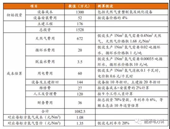 假定制氫規(guī)模 1000 Nm3/h,年產(chǎn)氫 100 萬 Nm3。測算過程及假設(shè)如下: