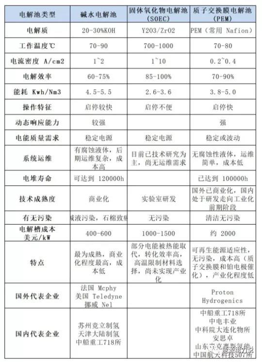 目前主流的電解水制氫技術(shù)有三種類型:包括堿性電解水制氫、質(zhì)子交換膜電解水(PEM)制氫和固態(tài)氧化物電解水(SOEC)制氫,其中堿性電解水制氫是最為成熟、產(chǎn)業(yè)化程度最廣的制氫技術(shù),但其電解效率僅為 60-75%,國外研發(fā)的 PEM技術(shù)與 SOEC 技術(shù)均能有效提高電解效率,尤其是 PEM 技術(shù)已引入國內(nèi)市場。
