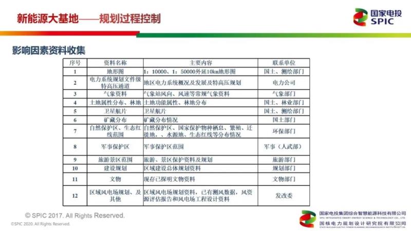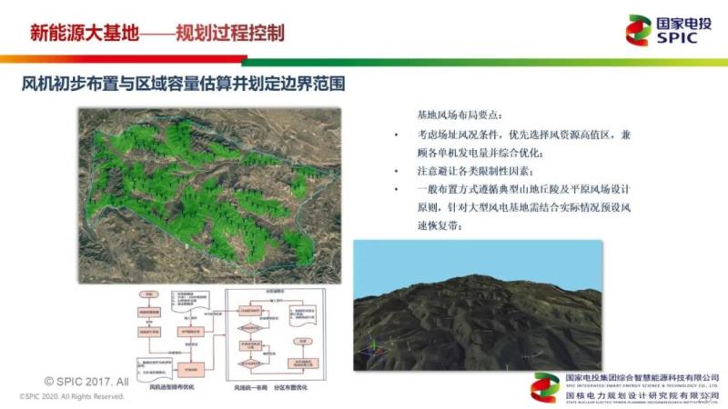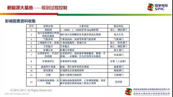 “對(duì)于風(fēng)電基地過程規(guī)劃控制,首先要進(jìn)行風(fēng)資源精細(xì)化分析。從某一個(gè)省開始,規(guī)劃一片區(qū)域,對(duì)這片區(qū)域不停細(xì)化,通過專業(yè)軟件細(xì)化到要規(guī)劃的基地范圍內(nèi),風(fēng)資源的數(shù)據(jù)也更細(xì)化,最終聚焦到規(guī)劃的基地上來?!崩瞽Z說道,“整個(gè)基地規(guī)劃的影響因素,大概分12類,包括地形圖、電力系統(tǒng)規(guī)劃文件級(jí)特高壓通道、氣象資料、土地屬性分布、林地、衛(wèi)星航片等。在規(guī)劃階段,對(duì)這些影響因素以及生態(tài)紅線范圍一定要特別的注意。”