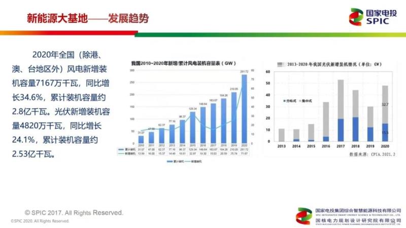 進(jìn)入“十四五”之后,為了加快實(shí)現(xiàn)風(fēng)電光伏為主的新能源發(fā)展,構(gòu)建新型電力系統(tǒng),從中央到地方在十四五規(guī)劃中都積極推動(dòng)多能互補(bǔ)、一體化大基地的建設(shè)。
