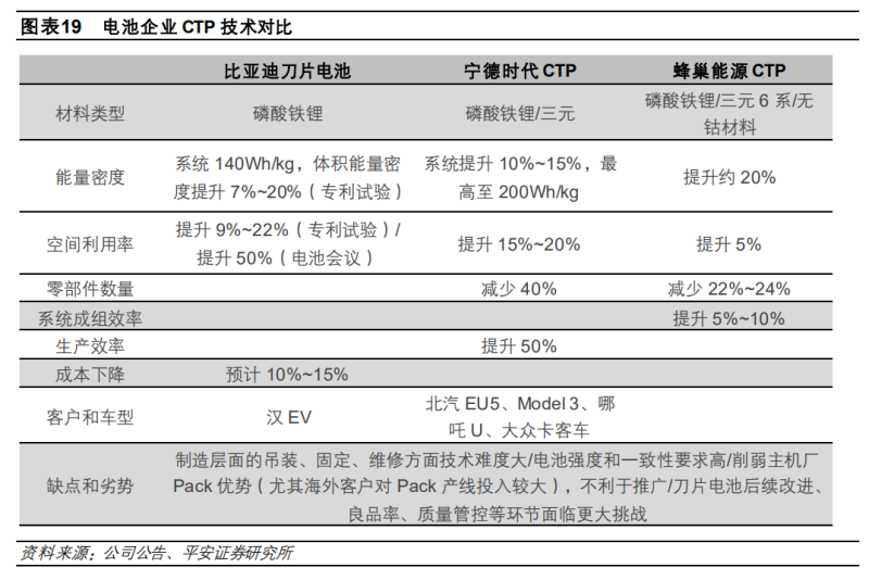比亞迪的刀片電池就是最好的例子。竭力將單體電芯尺寸做大,從而在有限空間內(nèi)放置更多的電芯單體,通過壓縮多余連接件的方式,提升電池包內(nèi)電芯占比,從而最終有效降低成本,提升能量密度。數(shù)據(jù)顯示,同樣體積刀片電池的效率提升在50%以上。