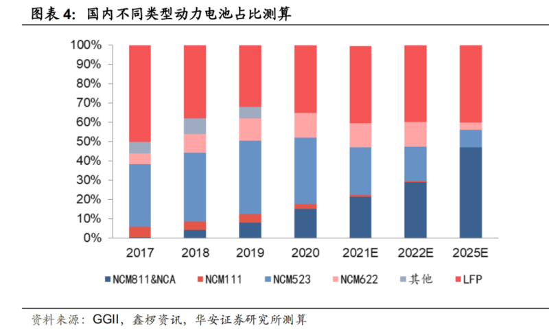 按照材料成本不同,NCM三元電池可以分為111、523、622、811等若干種。其中,NCM811是鈷占比最低的產(chǎn)品,寧德時(shí)代已經(jīng)于2019年實(shí)現(xiàn)量產(chǎn)。