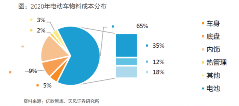 相關(guān)測(cè)算顯示,電控系統(tǒng)的成本占新能源汽車總成本的65%,遠(yuǎn)高于燃油車發(fā)動(dòng)機(jī)的30%,僅動(dòng)力電池一項(xiàng)成本占比就超過35%。作為新能源電動(dòng)車的核心,動(dòng)力電池已經(jīng)成為整車廠商較量的底牌。