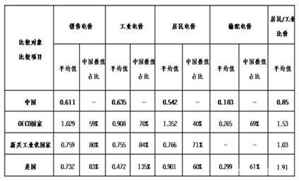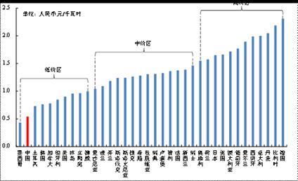 中國與有關(guān)國家電價比較情況(單位:元/千瓦時)