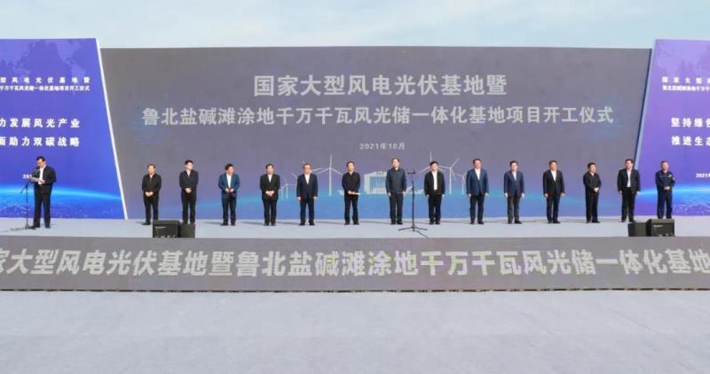 10月28日,國家大型風(fēng)電光伏基地暨魯北鹽堿灘涂地千萬千瓦風(fēng)光儲(chǔ)一體化基地,首批總裝機(jī)200萬千瓦集中式光伏發(fā)電項(xiàng)目開工儀式在濰坊舉行。