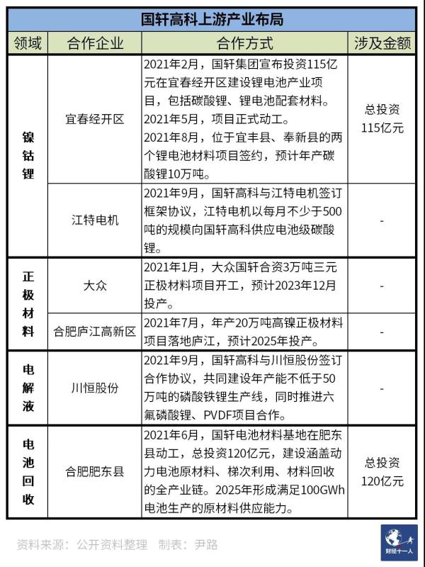 價(jià)格焦慮、供應(yīng)焦慮、碳排放焦慮,三重焦慮困擾下,電池企業(yè)的破解之道簡單粗暴——買買買?!敦?cái)經(jīng)十一人》根據(jù)公開資料整理了寧德時(shí)代、國軒高科、億緯鋰能三家上市頭部電池企業(yè)在上游供應(yīng)鏈方面的布局。