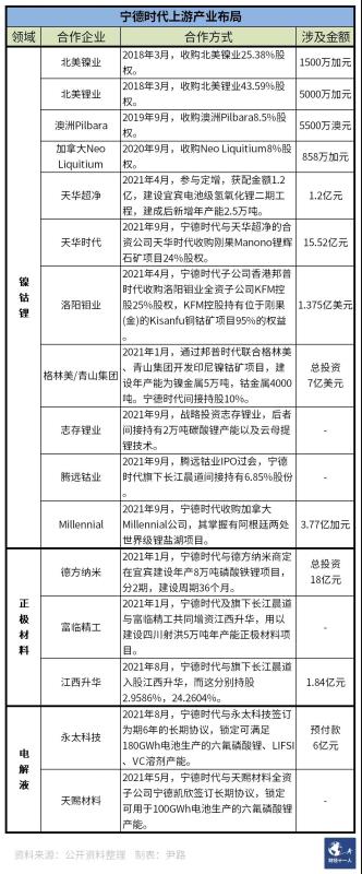 在上游供應(yīng)鏈的布局方面,寧德時(shí)代并不追求絕對控股,而是力求在更廣泛的領(lǐng)域建立影響力。