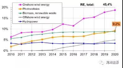 德國電能消費中可再生能源發(fā)電量占比